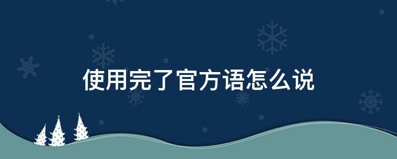 使用完了官方语的说法是Used up,例如:The materials have been used up(材料使用完毕)。It looks like the materials have been used up,Do you have any more in the storage room(看起来材料已经用完了,你们储藏室里还有更多的材料吗)。