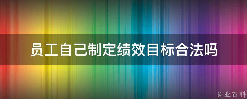 员工自己制定绩效目标合法。员工自己制定绩效目标在一些组织和管理实践中是被采用的,通常被称为自我定目标、个人目标设定或员工驱动目标设定等。在这种方法中,员工可以根据自身的职责、能力和目标设定自己的绩效目标。在许多情况下,员工可以与直接上级或管理层协商并制定个人目标,以便更好地与组织的整体目标和战略相匹配。