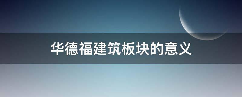 华德福建筑板块的意义