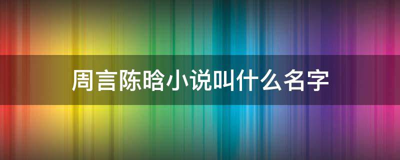 周言陈晗小说叫什么名字