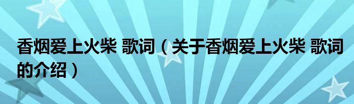 香烟爱上火柴歌词(关于香烟爱上火柴歌词的介绍)
