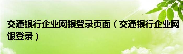 交通银行企业网银登录页面(交通银行企业网银登录)