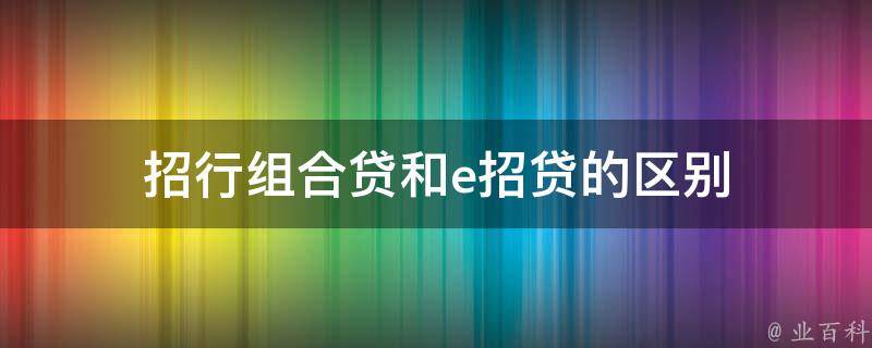 招行组合贷和e招贷的区别
