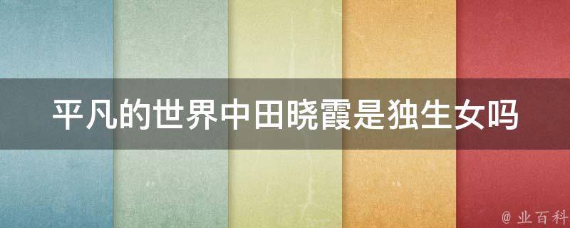 最佳答案平凡的世界中田晓霞是独生女。田晓霞,当代作家路遥长篇小说《平凡的世界》中的女主人公,她的身份是省报记者,有一个很好的出身,父亲是县委领导,母亲是医生,而她是独生女,典型的贵富美,最后死于洪灾。她的形象推动了孙少平人格的完善,是书中的一个重要人物。