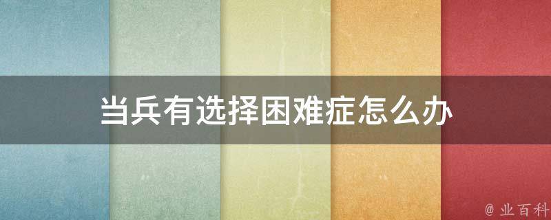 最佳答案当兵有选择困难症,首先要明确自己的目标和需求,有助于过滤掉与目标无关的选项。为了做出明智的选择,需要收集尽量多的相关信息,包括各个选项的优缺点、适用人群、可能带来的影响等。在情感层面上,评估每个选项可能带来的结果,对比不同选项之间的优劣,权衡各种因素,选择一个符合自己需求和价...