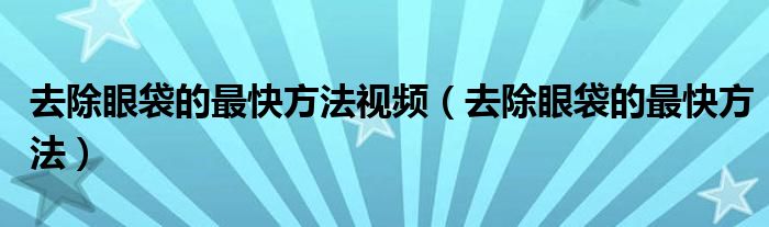 去除眼袋的最快方法视频(去除眼袋的最快方法)