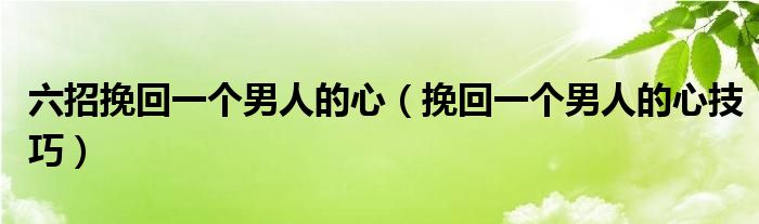 大家好,我是小科,我来为大家解答以上问题。六招挽回一个男人的心,挽回一个男人的心技巧很多人还不知道,现在让我们一起来看看吧!