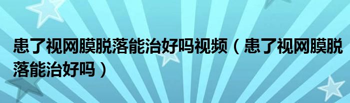 大家好,乐天来为大家解答以下的问题,患了视网膜脱落能治好吗视频,患了视网膜脱落能治好吗很多人还不知道,现在让我们一起来看看吧!