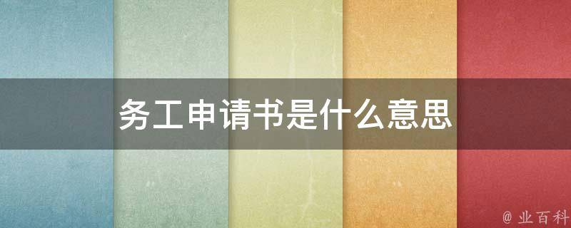 最佳答案务工申请书是指从事务工的人向单位或雇主提出申请工作并表明自己务工态度的文书。务工申请书通常包括申请人姓名、性别、年龄、文化程度、务工意向、申请理由等,需要写明自己的特长、优势和从事工作的情况,并对工作待遇和条件提出合理的要求,同时要表明自己的态度和决心,表达对工作的热爱和追求。