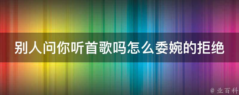 3、表达歉意:让对方知道你的拒绝并非是对他们的不尊重。可以说:希望你能理解,如果有其他时间或者机会,我会很愿意和你一起听歌。