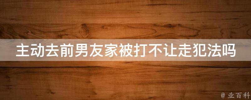 主动去前男友家被打不让走犯法,涉嫌非法拘禁。符合下列要件的,可认定为构成非法拘禁罪:主体是一般主体;侵害的客体是他人的人身自由权;主观方面是故意,并以剥夺他人人身自由为目的;客观方面是实施了以拘禁或者其他强制方法,非法剥夺他人身体自由的行为。
