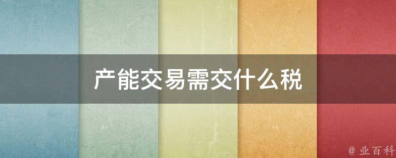 1、增值税:对于产能交易中的商品或服务,可能需要缴纳增值税。增值税的税率因地区和行业而异,一般由当地税务机关或相关机构根据具体情况确定。
