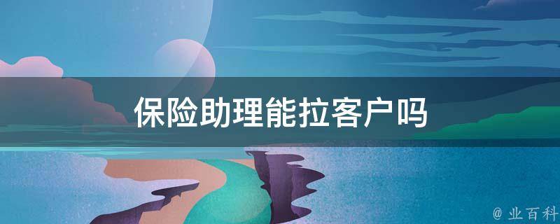 保险助理能拉客户。保险助理需要具备一定的保险知识和技能,能为客户提供专业的保险咨询和服务,帮助客户选择合适的保险产品。保险助理需要配合销售人员进行客户拜访、电话营销等工作,帮助销售人员完成销售任务。还要处理客户的投诉和纠纷,及时解决客户的问题。