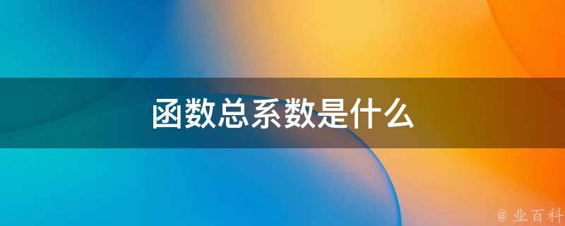 函数总系数是指函数中所有系数的总和。系数是关系的数值。一个系数一旦被估定,便表明了两个或更多个变量之间的联系。例如,变量X和Y之间的皮尔逊相关系这一数值,精确地把二者的关系数量化,表示二者的关系很强。