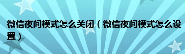 微信夜间模式怎么关闭(微信夜间模式怎么设置)