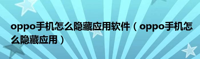 今天小饼为大家解答以下问题,关于oppo手机怎么隐藏应用软件,oppo手机怎么隐藏应用很多人还不知道,现在让我们一起来看看吧!