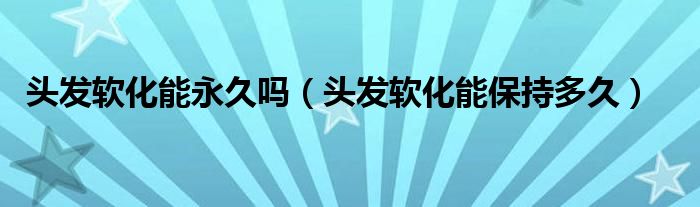大家好,我是小科,我来为大家解答以上问题。头发软化能永久吗,头发软化能保持多久很多人还不知道,现在让我们一起来看看吧!