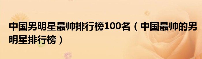 中国男明星最帅排行榜100名(中国最帅的男明星排行榜)