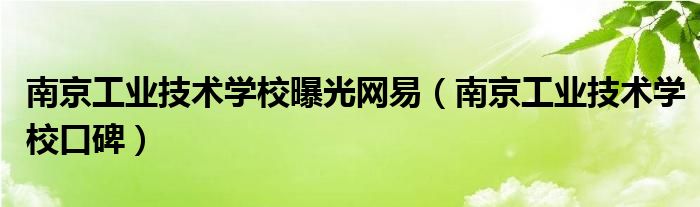 南京工业技术学校曝光网易(南京工业技术学校口碑)