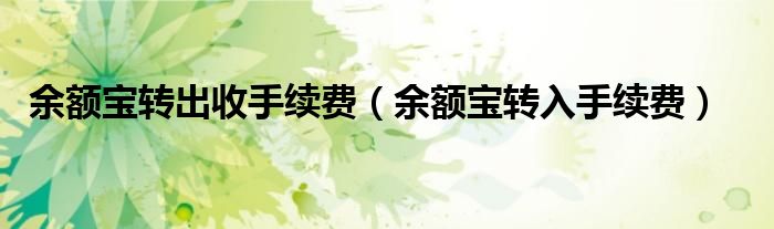 大家好,我是小科,我来为大家解答以上问题。余额宝转出收手续费,余额宝转入手续费很多人还不知道,现在让我们一起来看看吧!