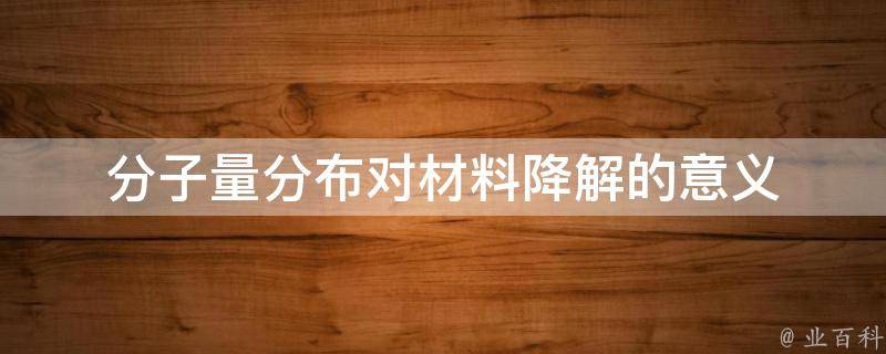 分子量分布对材料降解的意义在于:分子量分布越窄,该材料的性能越稳定,不易发生降解。大多数聚合物分子量越大,其性能越稳定,不易发生降解。而分子量较小的聚合物,其性能不稳定,易发生降解。因此,在生产和使用聚合物材料时,要特别注意其分子量分布情况,以保证材料的性能和稳定性。