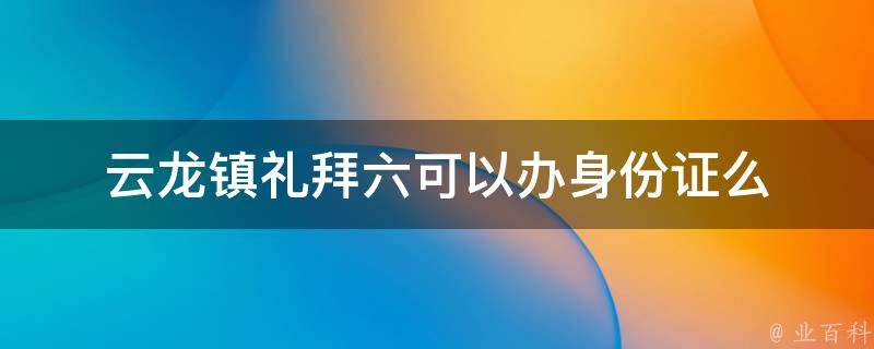 云龙镇礼拜六不可以办身份证,因为办证部门上班时间是工作日的上午九点到下午五点,中间会有休息时间,每周的上班时间为周一至周五。身份证的办理条件:公民应当自年满十六周岁之日起三个月内,向常住户口所在地的公安机关申请领取居民身份证;未满16周岁的公民,自愿申请领取二代证的,由其监护人代为申请领取,并提供监护人《居民身份证》原件及复印件;申请领取居民身份证,应当填写《居民身份证申领登记表》,交验居民户口簿。