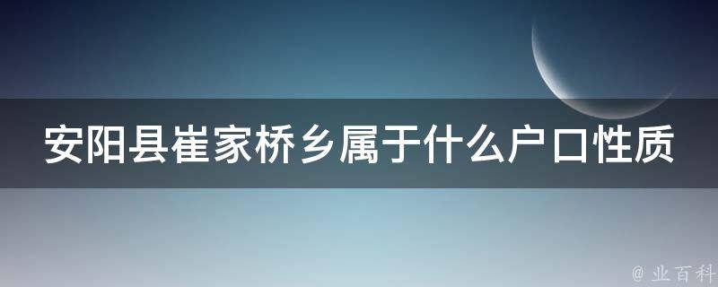 安阳县崔家桥乡的户口性质是农村户口。根据国家统计局公布的统计数据,在当前的户籍管理制度中,户口分为城镇户口和农村户口。农村户口是指持有农村集体土地使用证、宅基地使用证等证件的居民,而城镇户口是指持有城市户口本、城市身份证等证件的居民。