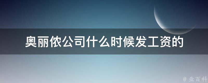 视情况而定。不同公司有不同的工资发放时间和制度,具体的发薪时间需要咨询公司的人力资源部门或相关负责人。如果需要了解奥丽侬公司的具体工资发放时间,建议直接咨询该公司或者相关负责人。