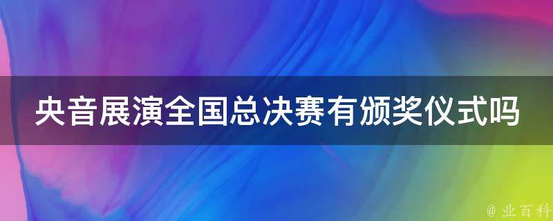央音展演全国总决赛有颁奖仪式。央音展演全国总决赛的颁奖仪式会在比赛结束后进行,为获奖选手颁发奖杯、证书和其他相关奖励。在央音展演中,获得不同名次的选手将获得相应的奖励,包括金奖、银奖、铜奖等。此外,央音展演还设有优秀指导教师奖和优秀组织奖等,以表彰在比赛中表现突出的教师和组织单位。