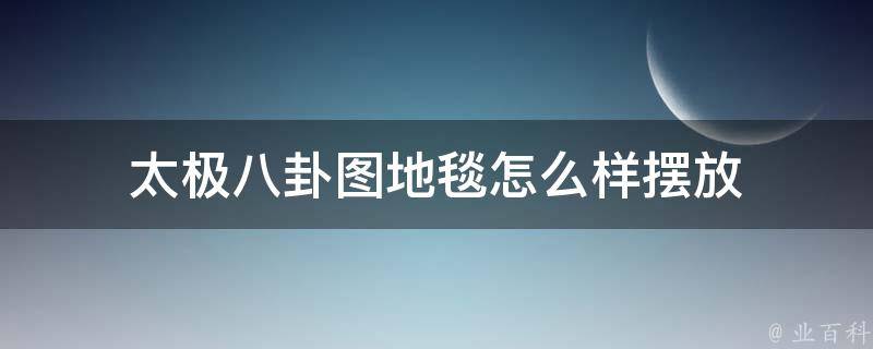 最佳答案1、放在入口处:将太极八卦图地毯放在家中的入口处,可以起到迎客和辟邪的作用,同时也能调整家中气场,增加好运气。2、放在客厅或卧室:将太极八卦图地毯放在客厅或卧室的地面或床铺下,可以调整家中的磁场,增加好的气场和运势。3、放在书房:将太极八卦图地毯放在书房中,可以调整书房的气场,增...