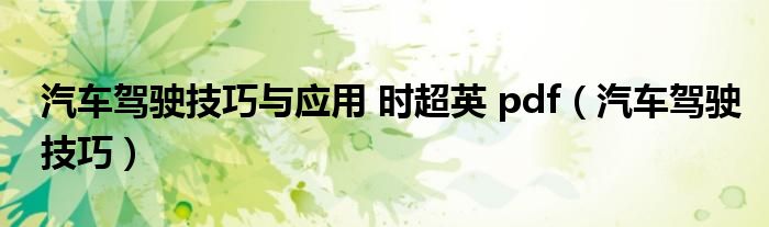 汽车驾驶技巧与应用时超英pdf(汽车驾驶技巧)
