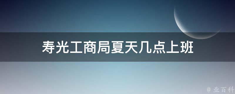 寿光工商局夏天8:30点上班,下午6点下班。具体的办公时间可能会根据节假日或政策变化而有所调整,建议直接联系寿光工商局相关工作人员以获取最准确的信息。寿光工商局下设7个内设机构和纪检监察室,均为为股级单位,内设机构分别是办公室、人事政工科、财务装备科、法制科、市场合同管理科、商标广告管理科、消费者权益保护科。