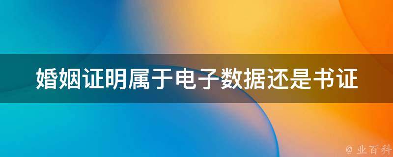 最佳答案视情况而定。婚姻证明可以是电子数据,也可以是书证,这取决于其以何种形式呈现。如果是以电子方式存储和传输的婚姻证明,如电子结婚证,那么它就是电子数据。如果是以书面形式呈现的婚姻证明,如结婚证复印件或原件,那么它就是书证。