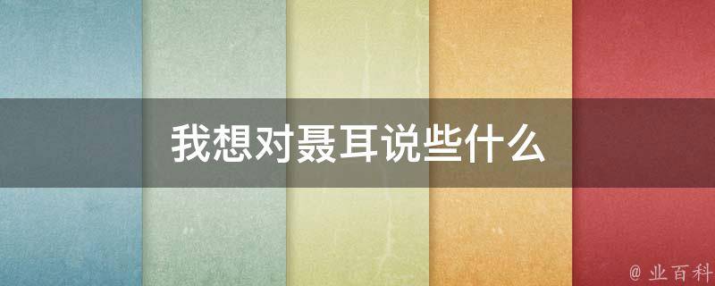 我想对聂耳说些什么