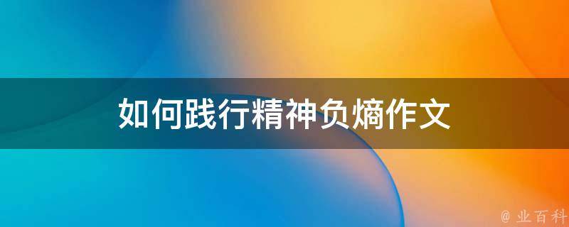 如何践行精神负熵作文