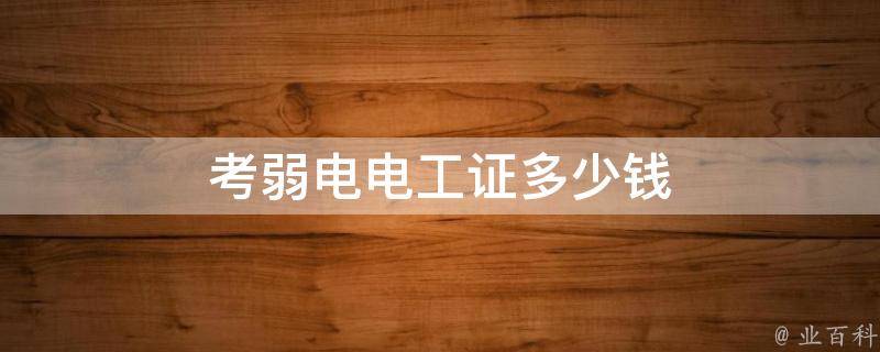 考弱电电工证多少钱