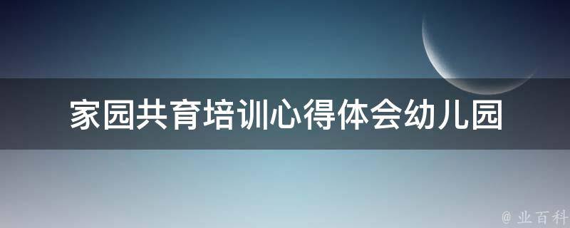 家园共育是幼儿健康成长的重要途径,也是幼儿园教育的重要环节。通过这次家园共育培训,我深刻认识到家园共育的重要性,也学到了很多实用的知识和方法。在未来的工作中,我将更加注重与家长的沟通和合作,为孩子的健康成长贡献自己的力量。