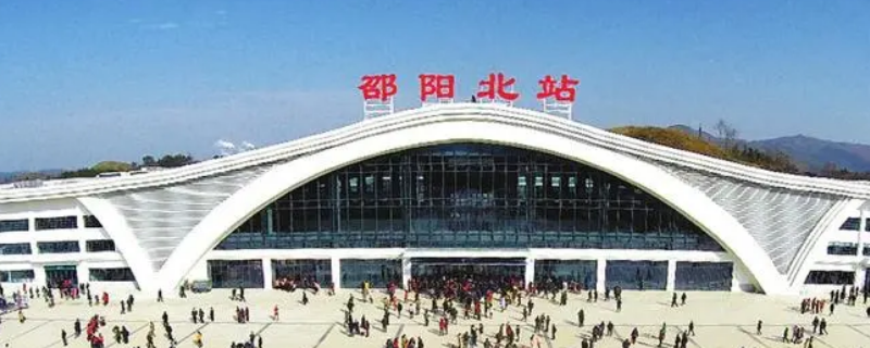 邵阳高铁站到新邵县城大约49.7公里。邵阳高铁站即邵阳北站,位于中国湖南省邵阳市,是中国铁路广州局集团有限公司管辖客运站,是沪昆高速铁路上的一个站点。2014年2月26日邵阳北站正式开工建设,2014年12月16日通车运营。