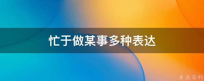 Busy doing something(忙于做某事);Occupied with something(忙于某事);Engaged in doing something(忙于从事某事)。相关的词组有:be occupied with(忙于做某事);be overloaded with(疲于应付某事);be tied up with(不可开交,脱不了身)。