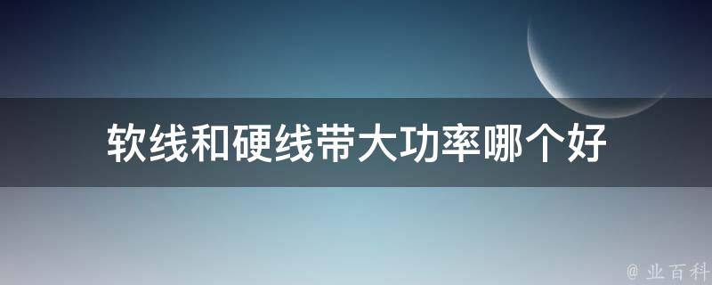 最佳答案视情况而定。软线和硬线在带大功率电器时各有优点,选择哪种取决于具体的使用场景和需求。硬线具有较高的绝缘强度和传导性能,能够承受更大的电流负载,因此更适合传输高功率电流。在需要传输大功率的情况下,硬线是更好的选择。而软线承载功率相对较小,容易受到绳子捆扎、弯折、扭曲等因素的影响...
