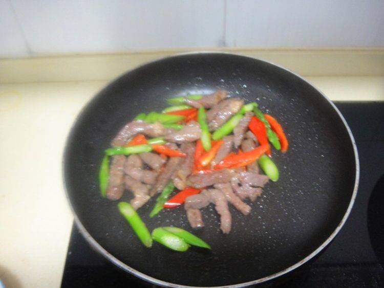 8、加芦笋翻炒。