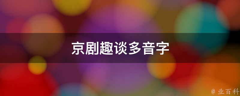 京剧趣谈多音字