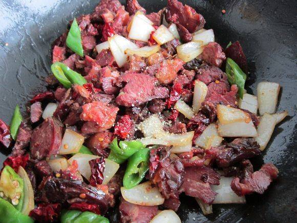 9、加辣椒块。