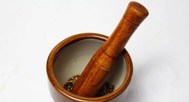 3、把花椒放到锅中小火煸炒至熟,捞出碾成碎末备用。