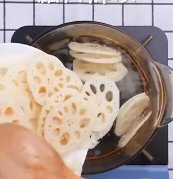 藕片焯水2分钟捞出。