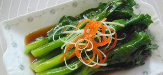 最佳答案用料:芥蓝250克、蚝油1汤匙、白糖1/2茶匙、酱油1汤匙、葱白少许、红椒少许、水适量、植物油2茶匙、食盐1/2茶匙。1.用小刀将芥蓝根部老皮去除洗净。2.红椒和葱白切细丝泡水中待用。3.将蚝油和酱油按照1:1比例倒入碗中,然后加入白糖和适量的水搅拌好。4.烧开水,水里加入1茶匙植物油、食盐和白糖,...