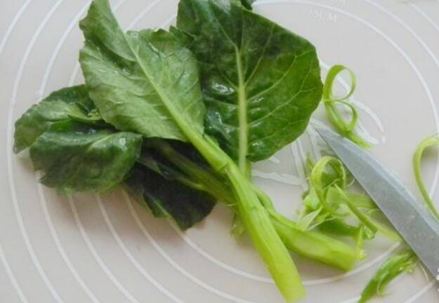 1.用小刀将芥蓝根部老皮去除洗净。