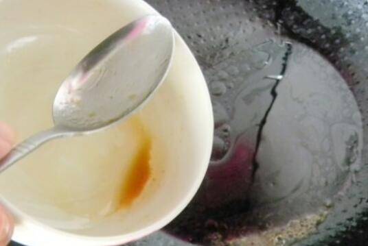 6.另起锅放入1茶匙植物油,将刚好兑好的汁倒入烧开即刻关火。