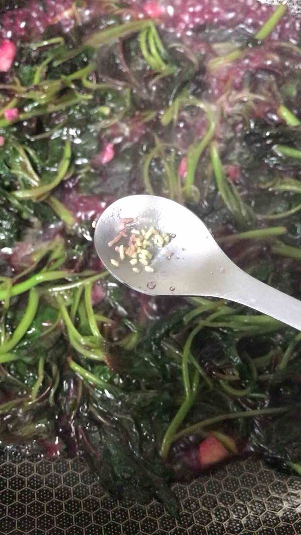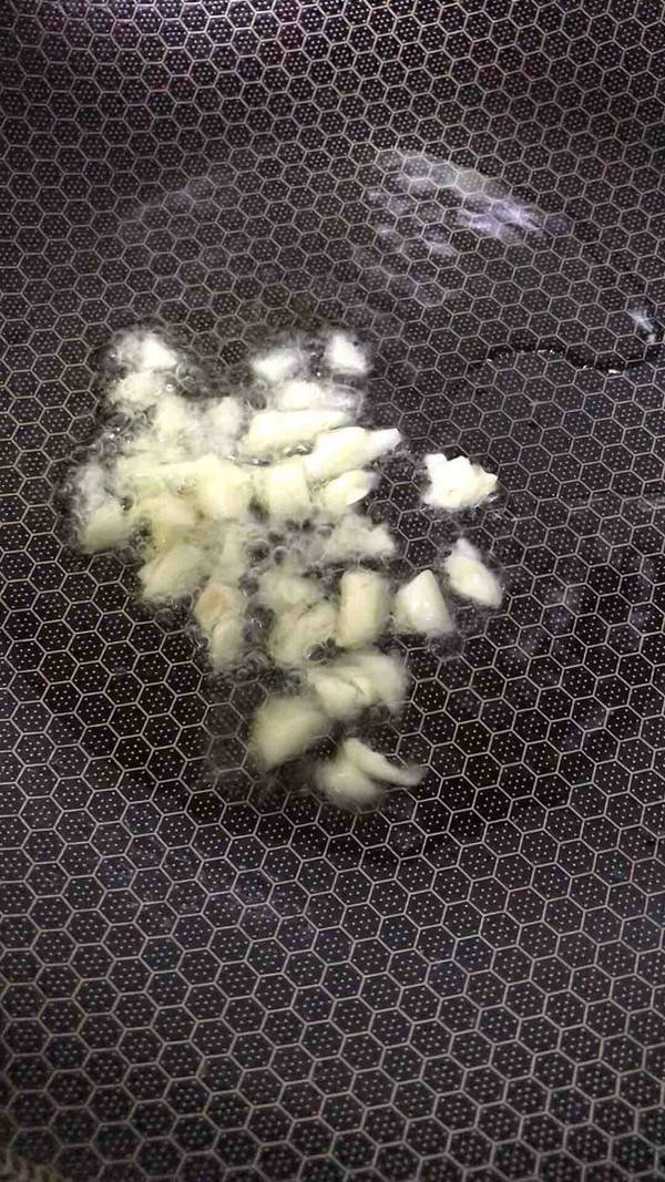 3、锅内爆香蒜末。