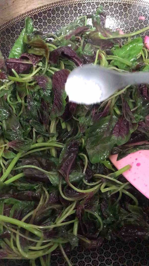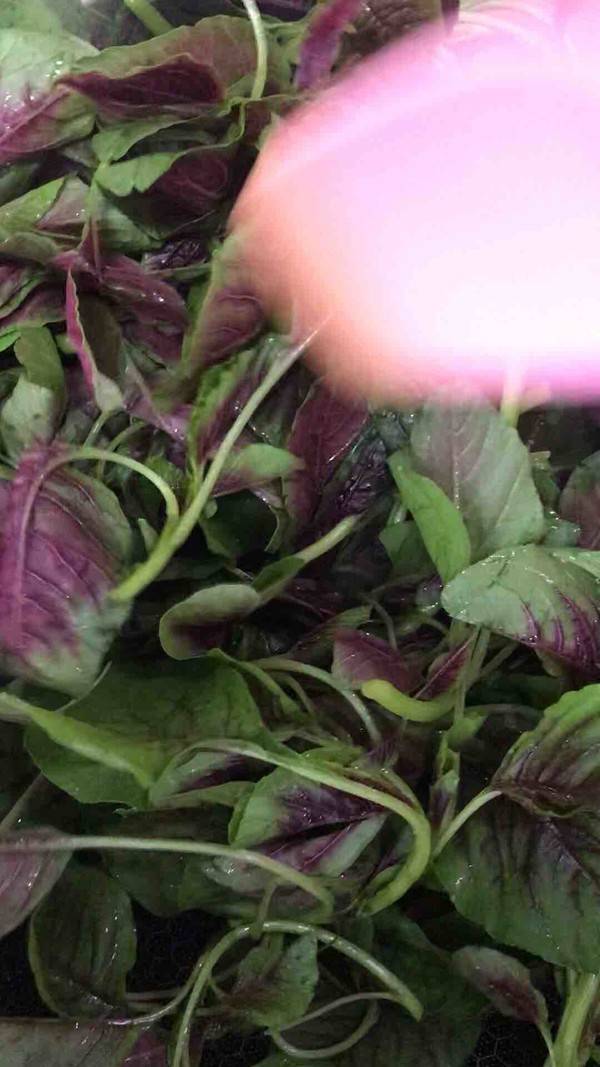 4、放入苋菜翻炒。